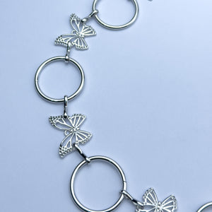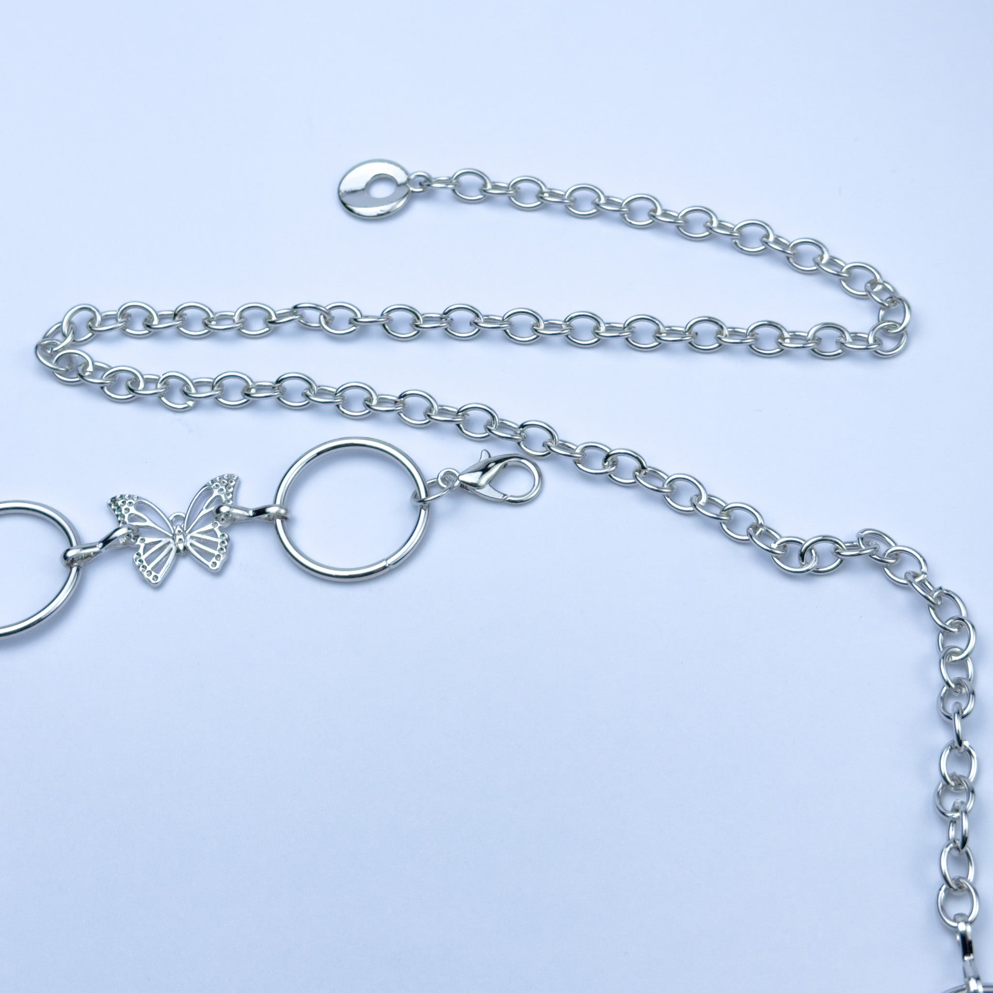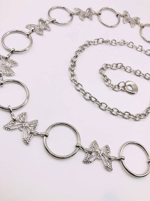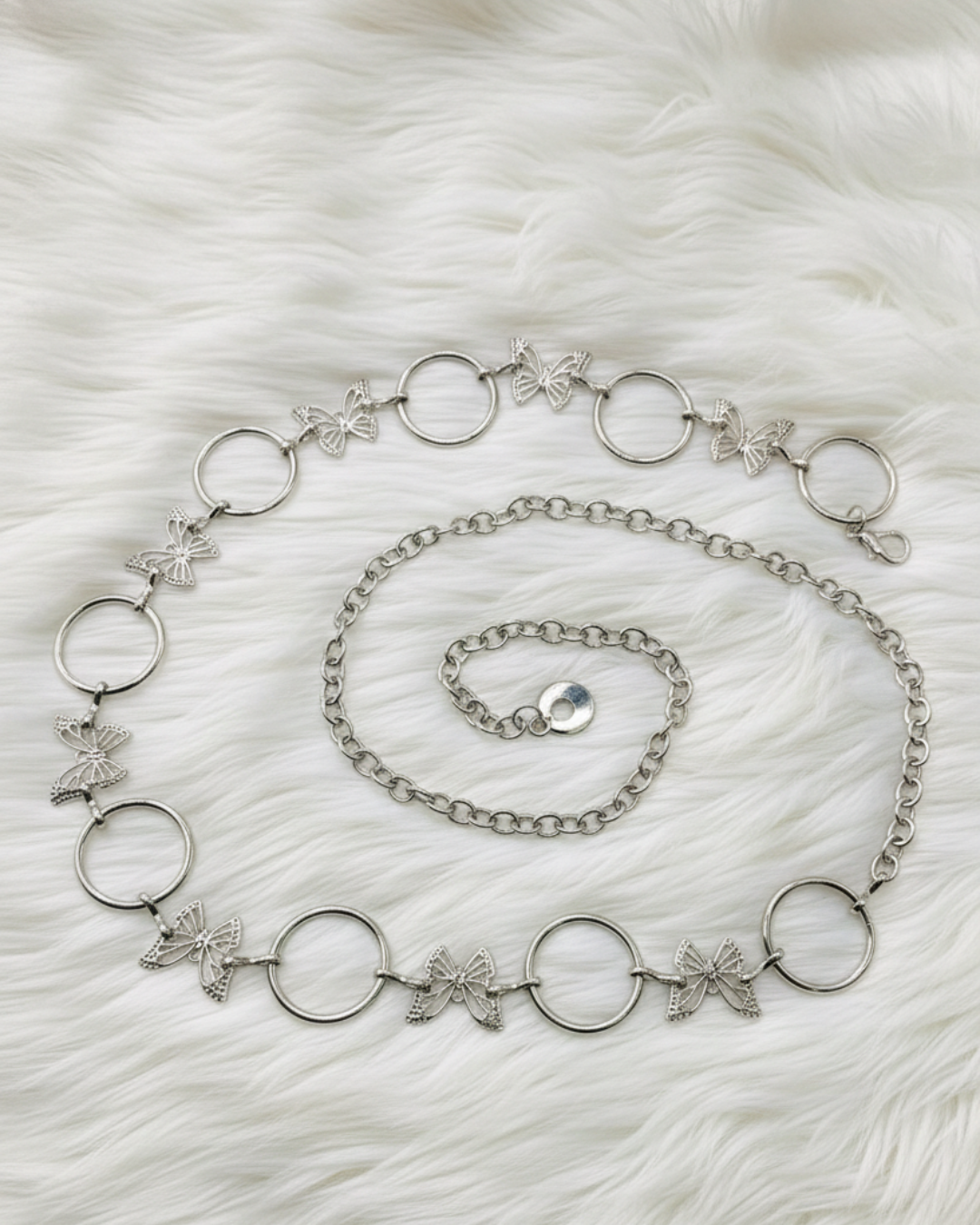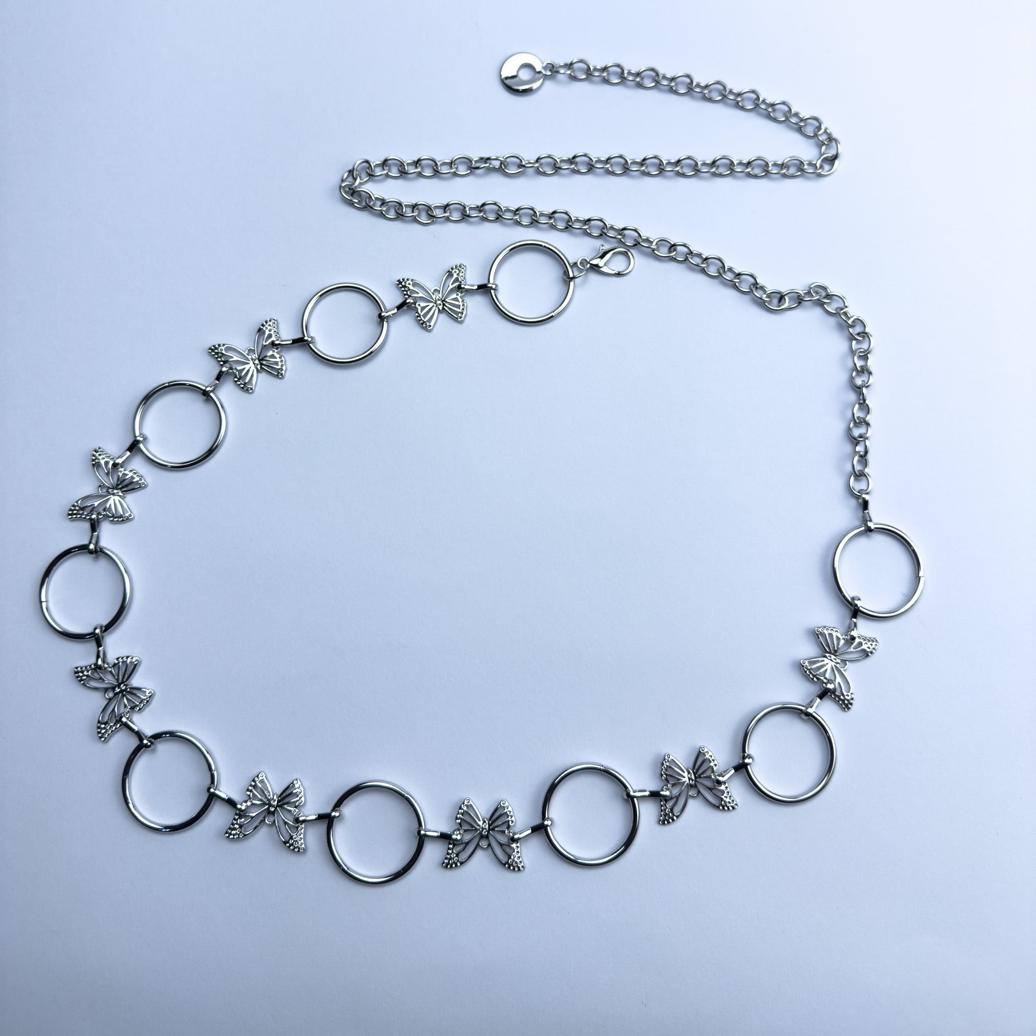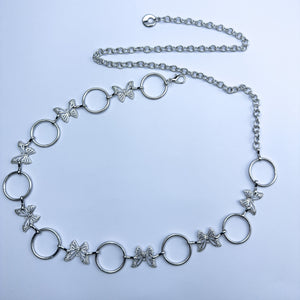 حزام سلسلة فضي بفراشات – حزام خصر ناعم