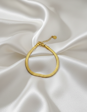 سوار ذهبي بتصميم Snake Chain مسطح يلتف حول المعصم بسلاسة وأناقة.