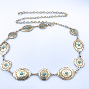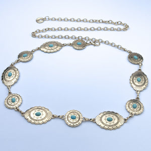 Gold Turquoise Stone Chain Belt – Western Concho Waist Chain